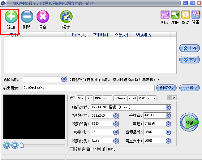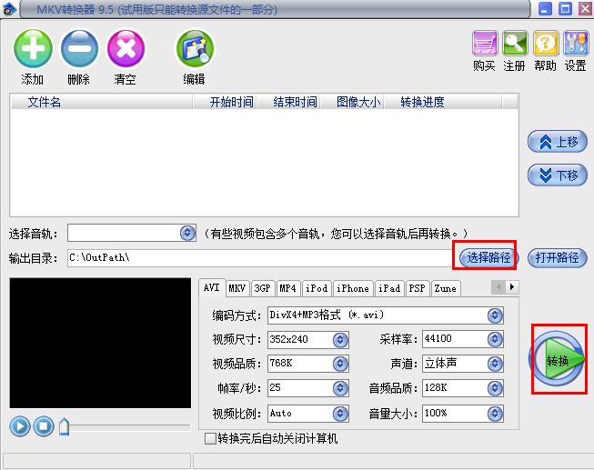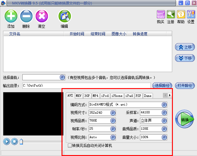 (2)支持所有流行格式转换为MKV视频和AVI、VCD、SVCD、DVD格式;