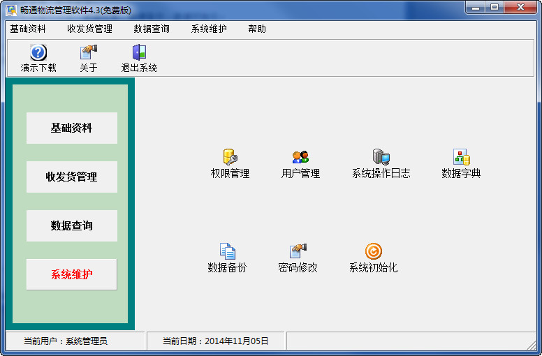 系统维护:权限管理、用户管理、更改密码、系统操作日志、数据字典、数据备份、数据初始化。