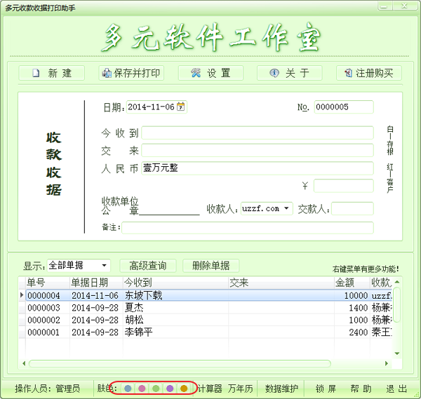多元收款收据打印助手(收款收据打印软件)是一款非常好用的由多元软件官方针对各种店铺、公司、网店所开发的收款收据打印软件。软件功能强大,参考了各类收款收据打印管理软件的精华,溶入了各自的优点并采纳众多用户的宝贵意见,真正的从用户需要出发,人性化的软件流程,使普通用户不需培训就能很快掌握软件的使用方法,软件界面简洁、美观,操作简单方便,功能强大。是店铺、公司、网店收据打印的首选产品。