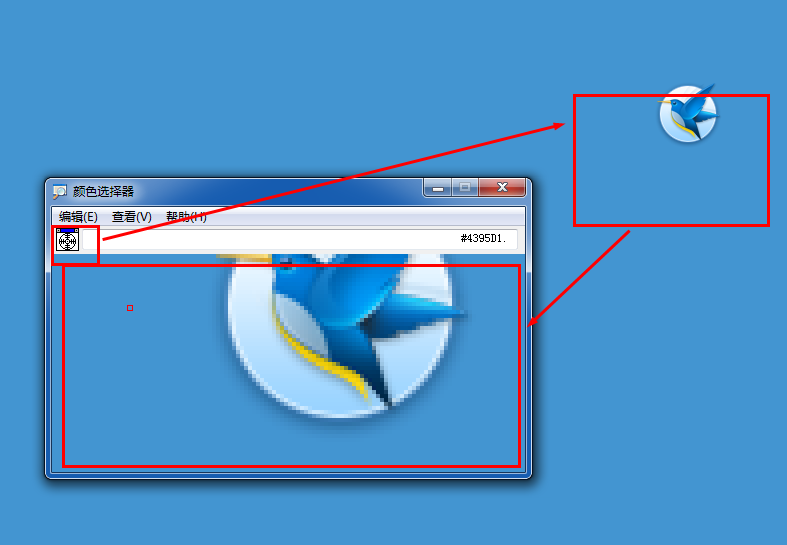 第一步:打开软件,拖动编辑按钮下面的图标来选择屏幕取色的范围。