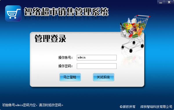 系统默认登录账号为:admin密码为空,为了系统安全,请及时修改超级管理员密码。