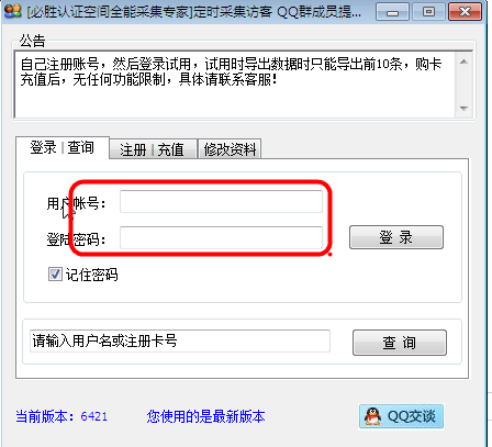 6.增加批量导入用户,可手动换号以及自动换号登录(用于采集访客等等)