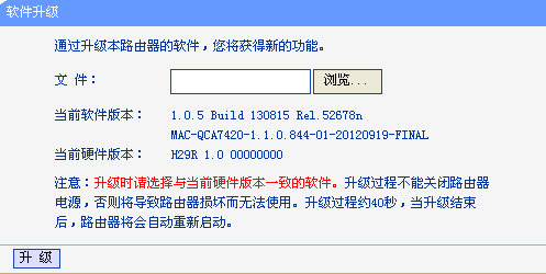 2、升级过程中不能关闭路由器电源,否则可能导致路由器损坏。