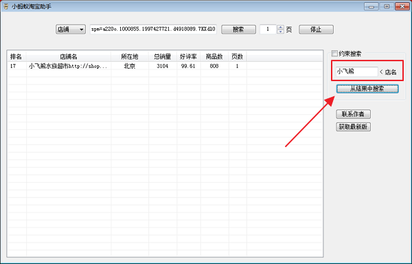 3、如果输出结果过多,不方便分辨,则可以输入店名(或宝贝)关键词,点击【从结果中搜索】,双击该链接还可以直接打开该店铺