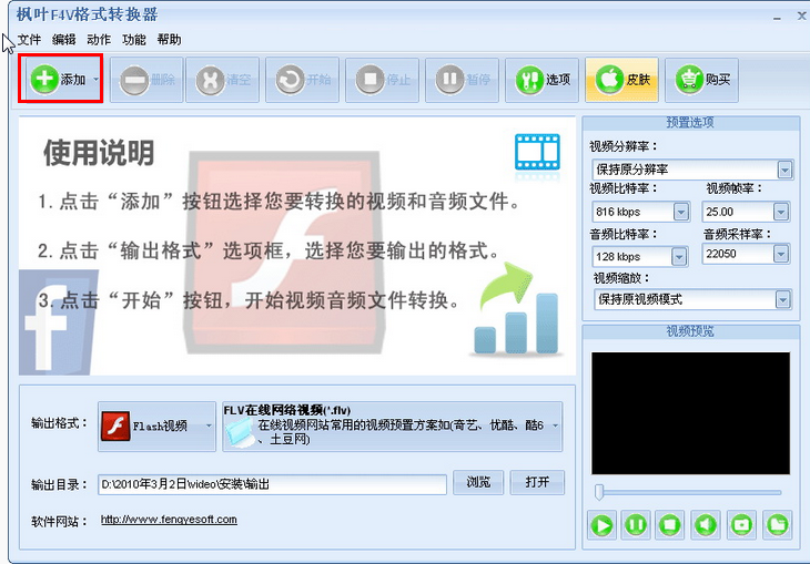 枫叶F4V格式转换器使用方法