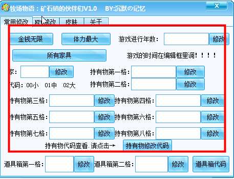 牧场物语矿石镇的伙伴们修改器其实就的同名游戏中最好用的工具,他不但可以让小伙伴们都能轻易的来进行操作,而且他还具备让所有道具都能进行随意的修改等等的强悍功能!
