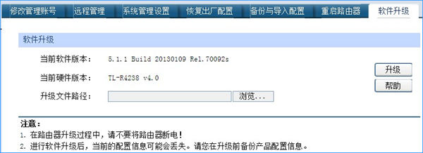 3、升级过程不能断电,否则可能会导致路由器损坏。