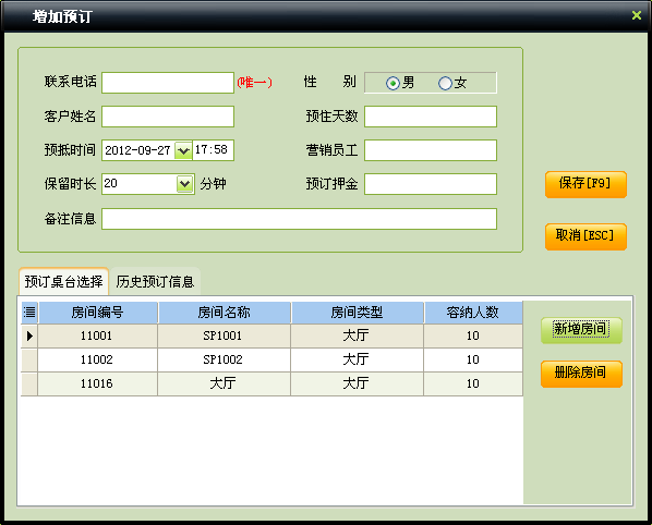 1.支持对同一房间在不同时间分别预订,因此主界面显示的房间状态是你当前指定要显示的日期对应的房间预订状态;