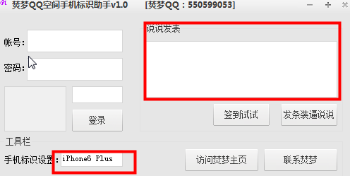 焚梦QQ空间手机标识助手其实就是款功能非常强大的QQ空间软件,他的主要的功能就是让你的说说显示出不同的手机小标识,其中这里面就可以输入iPhone6 Plus等等,让你的说说闪瞎众人!
