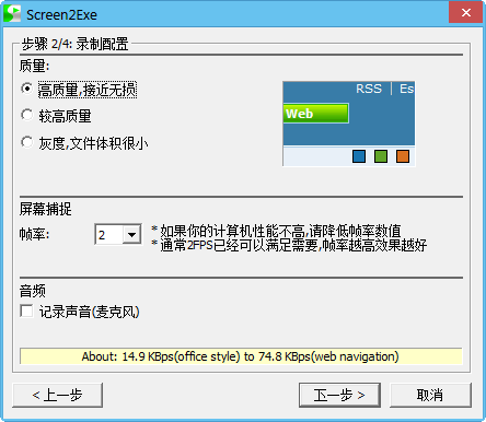 2、录制分为四个步骤,每个步骤都有详细设置说明,然后进入下一步,最后开始录制。