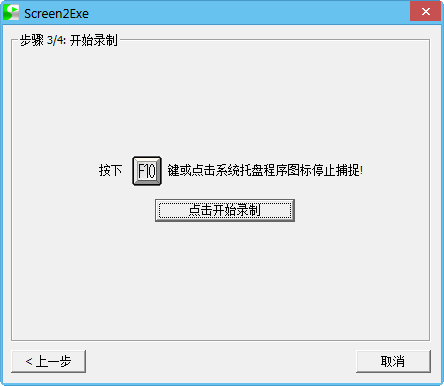 3、完成后可按托盘图标或F10停止录制,录制的文件体积小并以EXE格式保存到任意位置,不过需由程序自带播放器来播放。
