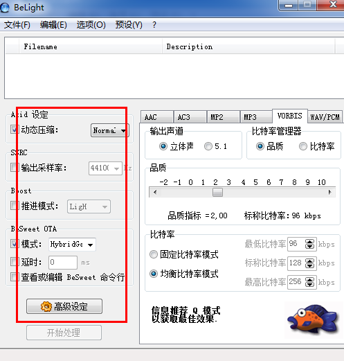 大家是不是有时候也需要进行音频转码呢?BeLight 是著名的音频转码工具 BeSweet 的免费前端之一,由 YAMB MP4Tools 的作者 Kurtnoise 编写。基于 BeSweet 内核提供对 MP3、AC3、WAV,MP2、AVI、Aiff、VOB、Ogg Vorbis. 等诸多格式的转码功能。BeLight 的用户界面较 BeSweet 自带的前端 BeSweetGUI 更为友好,易于上手。接下来,给大家介绍一下。
