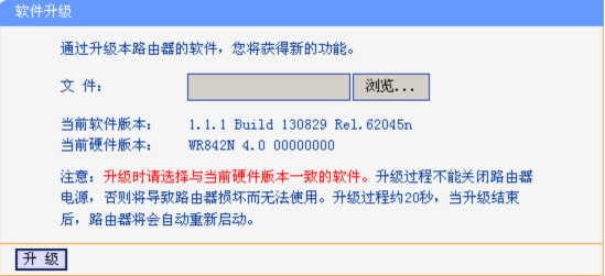 2、升级过程中不能关闭路由器电源,否则可能导致路由器损坏。