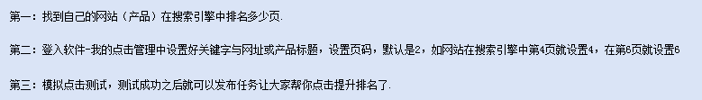 4、最好先测试点击,测试成功后增加任务,这样大家都用软件模拟搜索帮你点击网站提升排名了