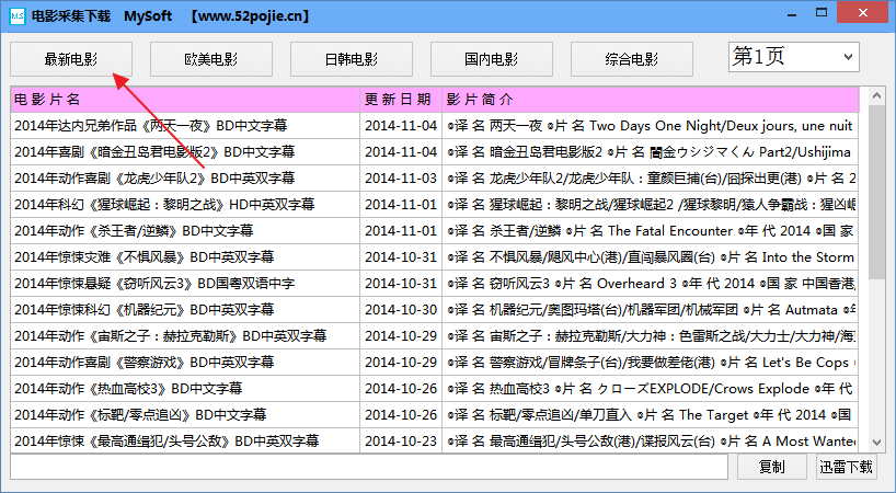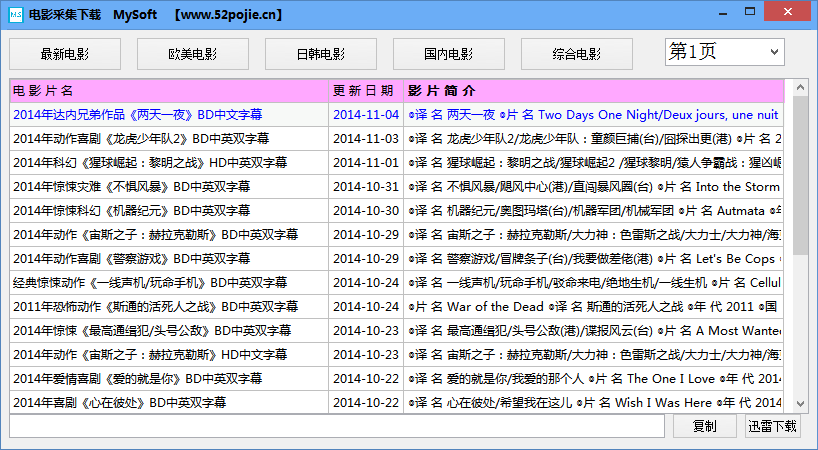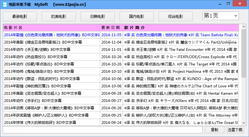 电影采集下载器是一个绿色无广告的最新电影下载软件,支持搜索,聚合了几个知名电影网站的资源,支持迅雷下载电影,把下载电影变的简单。
