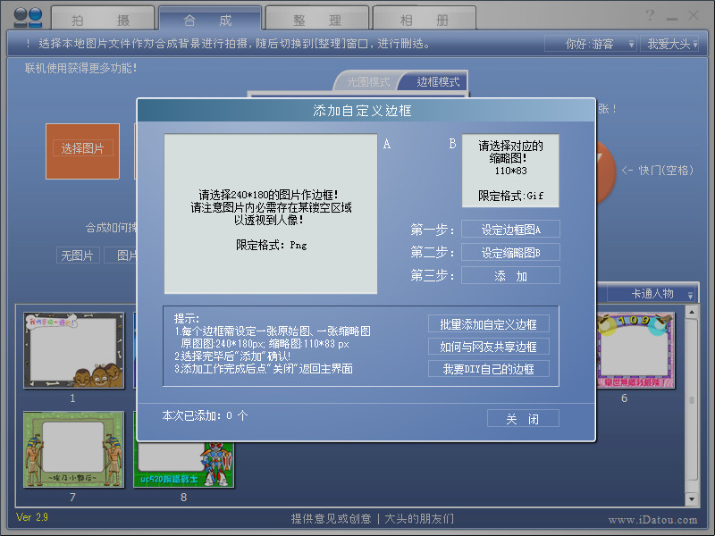 4、选择两张本地或网络图片到缩略图,陏后鼠标点击某张图片选作大头贴合成背景。具体操作如图中 合成如何操作?