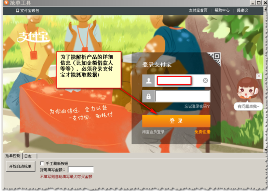 登陆支付宝以后,才能抓取产品的详细信息哦,助手嵌入的是IE浏览器,请放心使用!