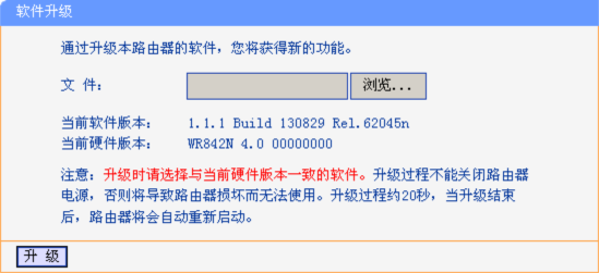 2、升级过程中不能关闭路由器电源,否则可能导致路由器损坏。