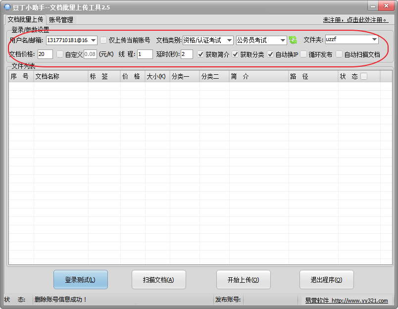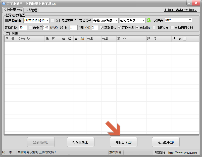 豆丁小助手文档批量上传工具是一款可以支持文档标签自动获取,多线程上传文档的软件。操作简单,速度稳定。是精彩需要传输大量文档用户必备软件。