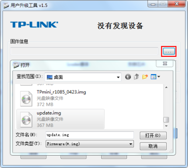 1、打开TP mini用户升级工具,在“固件信息”栏点击选择固件按钮,选择下载的升级固件。