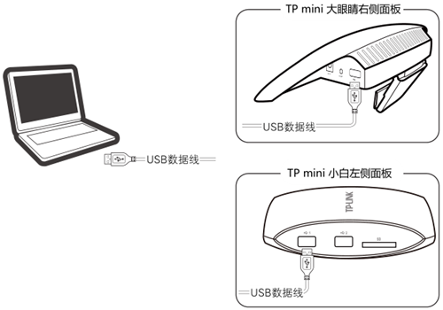 TP mini 大眼睛系列产品,请连接设备右侧面板的 USB 接口。