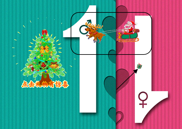 主程序是一棵圣诞树,可以随意拖动,圣诞树上有5个小礼物,每个小礼物都是一个场景的开关,点击即有惊喜,试试看哦,esc健结束程序。