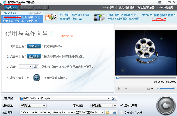 1、破解DVD碟、读取DVD视频、并将DVD转为MP4格式,适用于iPod播放器;并可选择DVD碟字幕及声道。
