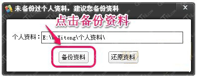 2.点击按钮后,会弹出个备份还原窗口,我们直接点备份资料按钮软件会自动备份,直到弹出个确认按钮,我们确认下就完成了!