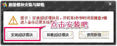 具体安装过程如下,而安装超级模块的主要作用如果不知道的可以参考上一节<<电脑怎么重装系统(二)重装系统前准备>>超级模块具体使用教程可以看重装系统第六节<<电脑怎么重装系统(六)重装系统终极法>>