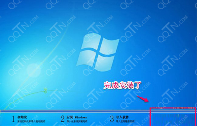 4.GHOST进度到100后,会再次重启电脑。然后正式开始安装系统。这些都是全自动的。安装系统部分截图如下所示: