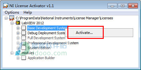 2、注册机中展开LabVIEW2012菜单,每一个选项都右击选择“Activate...”激活软件。