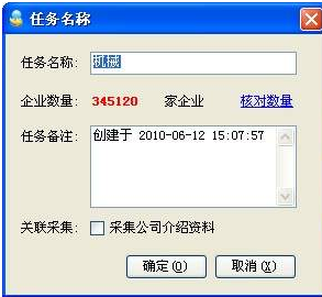 待软件获取到慧聪网上最新数据后,显示反馈给用户,输入一个任务名称,再点“确定”即可生成一个任务;按“确定”后,任务显示在软件中