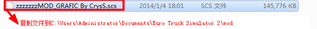 2、复制文件到C:\Users\Administrator\Documents\Euro Truck Simulator 2\mod