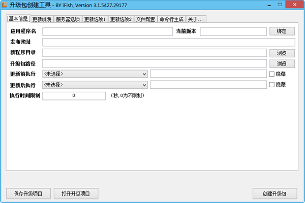 基本信息:设置应用程序的基本信息,版本信息,更新说明,和 保存升级包的目录。注意,老版本中这里是升级包文件(*.zip)的路径,在新版中,因为增量更新的引入,已经修改为保存升级包的目录;