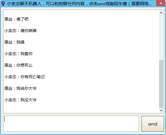 小变态聊天机器人是一款绿色免费的自动聊天机器人软件,风趣幽默而又机智的回答,一定让你捧腹开怀。同时机器人还可以为您的生活提供服务信息,并且能实现自然语言的交互,与您进行有趣的对话。