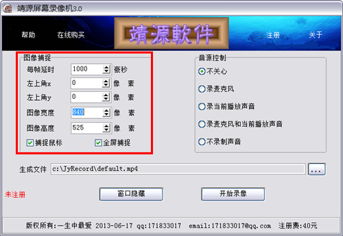 靖源屏幕录像机是一款用来录制屏幕为mp4/avi/flv/swf动画的软件,支持录制正在播放的声音、麦克风,支持捕捉正在播放的视频,您甚至可以当作一个录音机来使用(输出wav/mp3)。