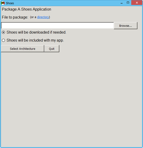 Shoes是一个免费易用的GUI工具包,它可以帮助你简单的打包应用程序可以在所有主流平台上运行,包括Windows,Linux和Mac OS。