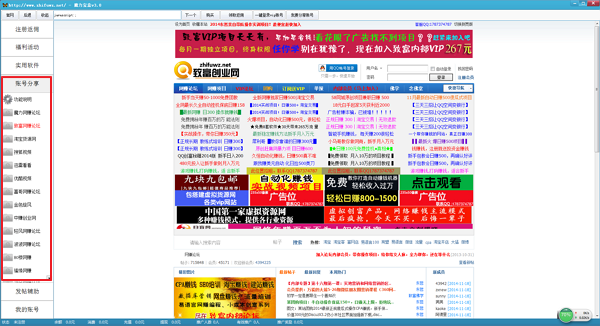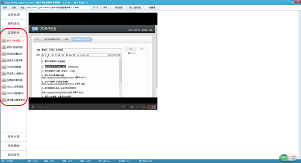 功能4:软件内有一个账户分享功能,内置几十个网站的vip账户,可以通过网页填表方式一键登录