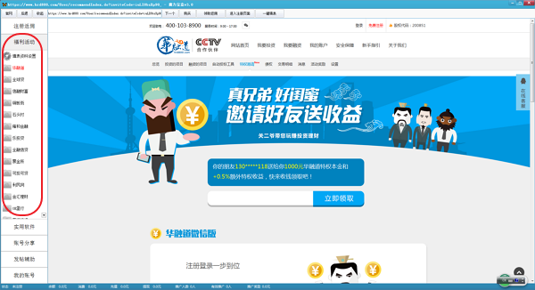 功能1:软件可以半自动注册各自最新的p2p金融平台,领取平台活动的奖励