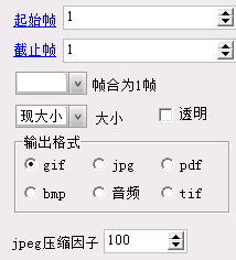 2、设置起始帧,截止帧,合并帧数,大小,输出格式等参数