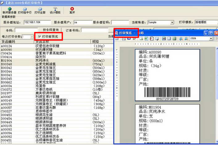 1、支持从不同帐套查询并打印商品条码