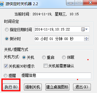 4、设置提醒方式,可选择关机前30秒提示、关机前需要确认和自定义提醒内容