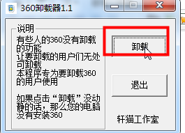 轩猫360卸载器其实就是款专门针对360的一款最新的卸载工具,通过它来实现对360的相关软件的卸载任务,使你的电脑彻底告别360软件,其实软件的操作十分的简单,喜欢的都可以来此下载!