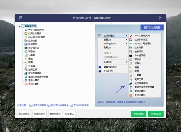 Win10优化大师“右键菜单快捷组”功能