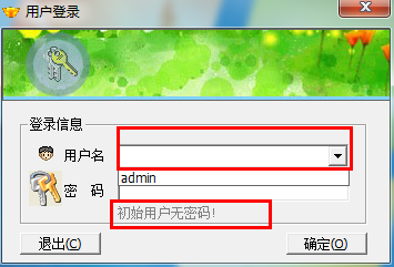 第一步:打开软件图标,选择用户名登录,初始用户无密码。