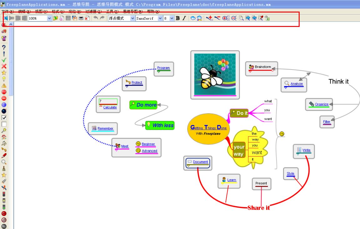 Freeplane是一款知识管理和项目管理程序,是一个思维导图制作软件,需要先安装JAVA程序,才能正常运行。