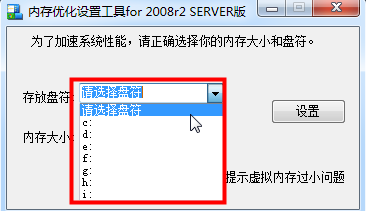 电脑内存优化设置工具其实就是一款适用电脑Windows2008R2的功能强大虚拟内存优化软件,他通过设置盘符与内存的大小来更好的优化系统虚拟内存,从而解决一些因为虚拟内存引起问题,需要的都可以来此下载!