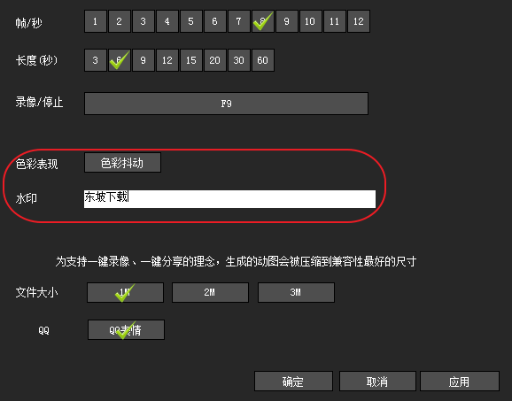 录像有2种模型:全屏和指定区域录像,左下的图标就是指定区域录像,右边的是全屏。默认快捷键是F9