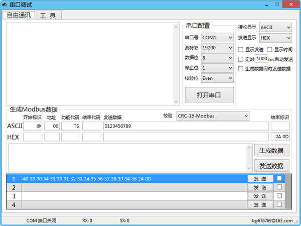 使用16进制调试,您可以使用16进制调试串口的数据,用于检验其他软件的包文。