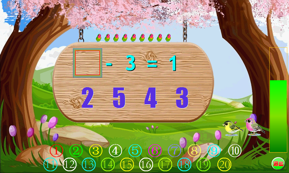 2、宝贝真棒:每次游戏随机出20道题目,可在限制的时间内做完题目即为挑战成功。右键可选择游戏难度(共三级),可加上或取消时间限制(右面的时间条)。